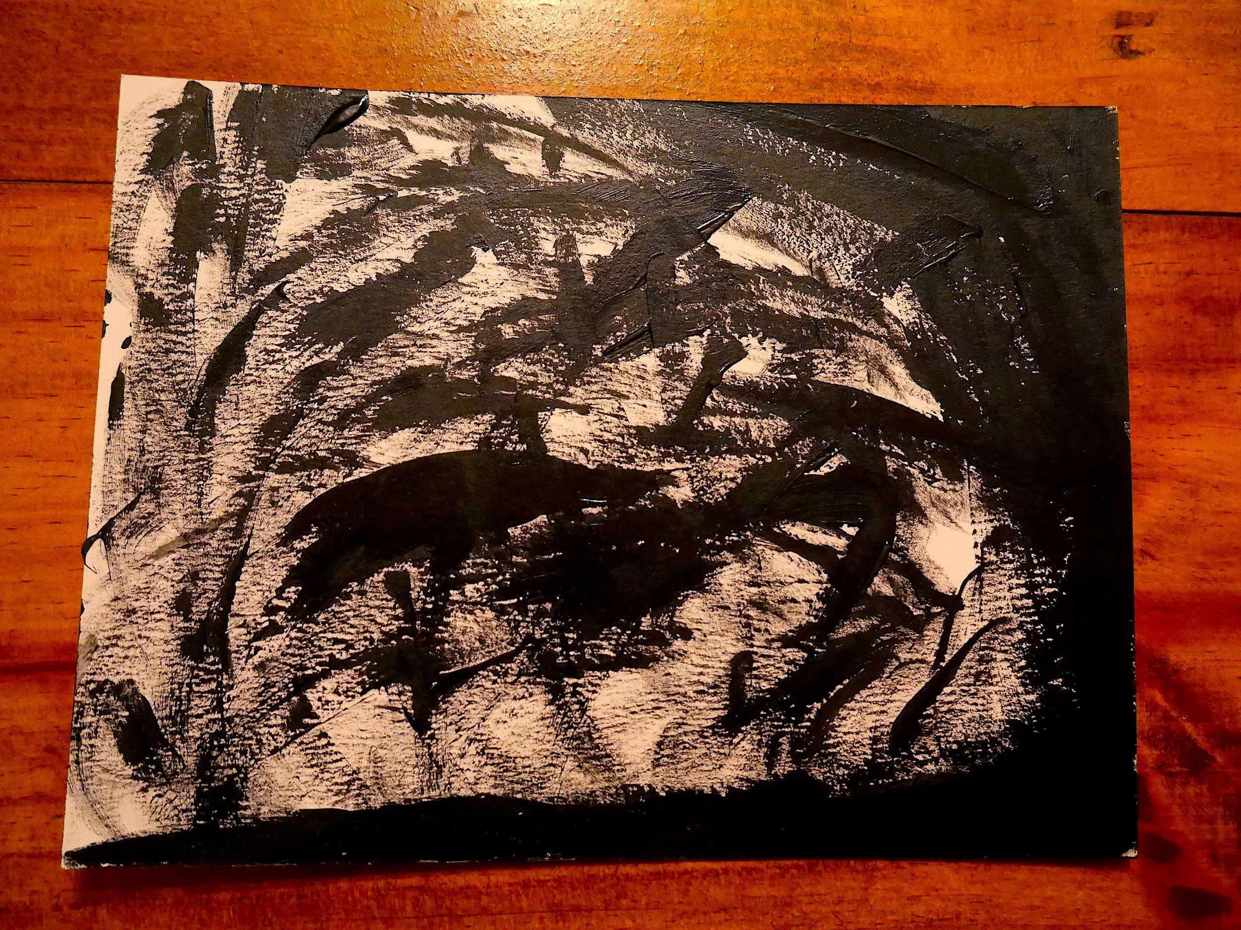 2021年の初めから今まで、白と黒の絵の具だけを使って、自分の中から出てくるものを、白や青の紙に落としていきました。絵を描くのは一番の苦手で、本来なら公開するようなものではないのですが、晒すことで、また何か発見があるかもしれないと思います。今年2024年の五月で100枚書き終えることができました。こちらに徐々にアップしていきます。